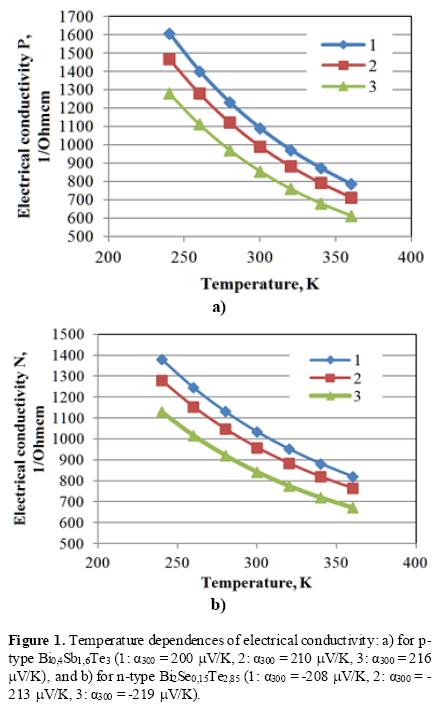 We see that the difference in ΔTmax reaches two degrees, whereas, based on the average value of the figures-of-merit it should not exceed 0,3 K. Thus, the condition of matching pellets by the electrical properties (4), allowing for the temperature dependences, becomes: