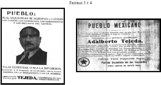 A la par del PSI funcionaba un Comité Directivo Nacional ProTejeda (figura 2), un Centro "Adalberto Tejeda" y otras organizaciones simpatizantes de la candidatura del político veracruzano,13 lo que llevó al PSI a dirigirse al secretario de Gobernación, Eduardo Vasconcelos, para informarle de la fusión de todos, recayendo en el PSDLI la dirección de los trabajos políticosociales (figuras 3 y 4).14 Incluso, varios informes de los agentes de Gobernación continuaron refiriéndose al Comité Directivo Nacional ProTejeda como el responsable de la campaña del veracruzano durante algún tiempo.15