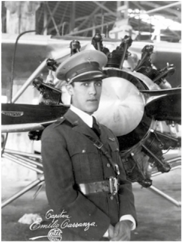 Emilio Carranza nació el sábado 9 de diciembre de 1905, en Ramos Arizpe, Coahuila. Vivió de niño con sus padres (Sebastián Carranza y María Rodríguez), en San Antonio, Texas.12 Su padre era empleado del consulado de México en Nueva York y su madre vivía en la Ciudad de México.13 Carranza ingresó como alumno supernumerario, sin sueldo, a la Escuela Militar de Aviación, el 20 de septiembre de 1921; causó baja el 11 de mayo de 1922. Dos años después, el 2 de julio de 1923, se convirtió de nuevo en alumno. Para el 14 de enero de 1926, ya era teniente piloto aviador. De ahí, el 11 de septiembre de 1927, pasó a ejercer como capitán segundo piloto aviador.