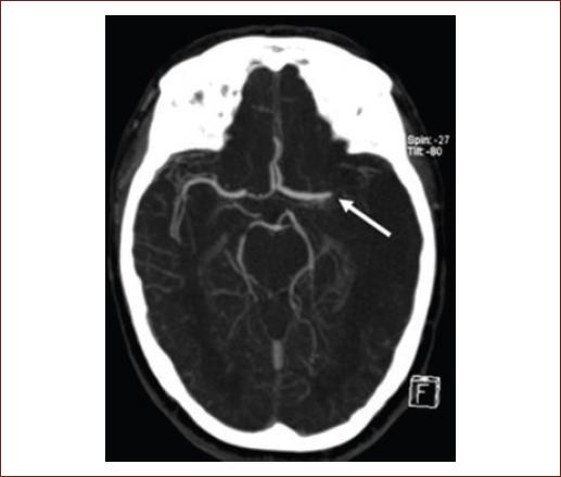 CTA is also useful to determine the etiology of an ischemic stroke and to identify underlying pathologies, such as carotid atherosclerosis (artery-to-artery embolism), intracranial atherosclerosis, or arterial dissection22. Figure 3 shows a CTA with occlusion of the left MCA.