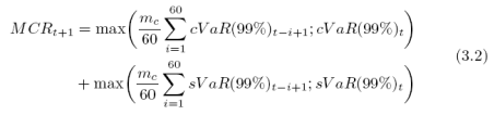 with ms = 3(1 + k) and k arises from Backtesting results for cVaR (not for sVaR). As k ∈ [0; 1] institutions should develop precise VaR models to keep k0 and avoid penalties.