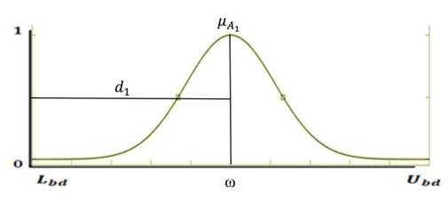 where μA1ωk represents the membership function of the fuzzy set of the parameter ωk , ω is the center and δω is the variance. And d1 is the distance where there is 99% of all parameters in this membership function. In this research is used the letter k how the subscript that defines an element of the membership function associated.