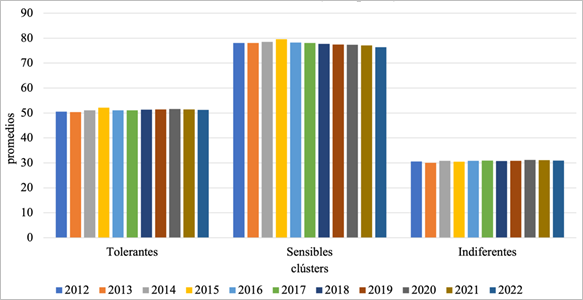 El primer grupo es el de Tolerantes. Aproximadamente un tercio de los países pertenecen a este grupo (34%). En estos casos, su sensibilidad a la corrupción es media: los encuestados la conocen y están familiarizados con el fenómeno. Aunque piensan que la corrupción es un problema existente, no actúan contra ella. Los 23 países (18%) que pertenecen al segundo grupo (sensibles) se caracterizan por el hecho de que los encuestados juzgan la ocurrencia de corrupción con mucha sensibilidad y califican la mayoría de los casos sospechosos como corrupción. Como hemos visto, la sensibilidad también depende de otras características del individuo, como el umbral del dolor (Fenyvesi, 2013). Un resultado sorprendente es que el grupo 3 (Indiferentes) incluye 64 países, es decir, casi la mitad de los países (49%). En estos, los entrevistados no abordan la corrupción. Su actitud se describe mejor con la formulación del Comité Europeo (CE, 2022): siempre aceptable (la corrupción es inevitable, siempre ha existido).