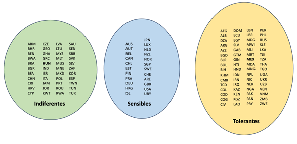 | Hungría | Rango medio (grupo 1) | Tolerantes (grupo 1) |