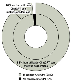 Con la herramienta utilizada en este estudio para la recolección de datos se identificó que los estudiantes que cursan su trayectoria académica en la FCA y que conocen ChatGPT representan 98% (ver gráfica 1), por ende 2% desconoce este tipo de IA. Además, resultó considerable calcular el nivel de jóvenes que han utilizado este chatbot con motivos educativos. Los resultados al respecto fueron que 88% sí lo ha empleado y 10% no lo ha aprovechado para este fin.