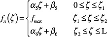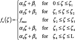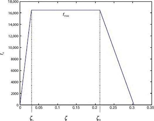 Considering Figure 13, the function f n that describes the longitudinal force along the patch position ζ can be approximated by piecewise functions as: