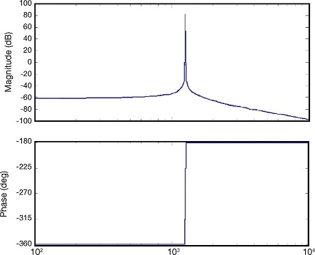 To decide if strain gages were suitable for the task of measuring the force distribution in the contact patch, one gage was adhered to a metallic strip which was later placed on an electrodynamic stimulator to get its frequency response. With frequencies from 20 [Hz] to 1300 [Hz], sinusoidal and square functions were programmed on the electrodynamic stimulator in order to obtain the response for the gages, that can be viewed on the Bode plot of Figure 11 where the transfer function is approximated by: