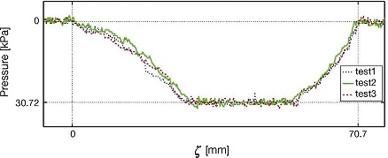 Size of the patch: The extension of the full contact patch, as derived from the experiments, is rectangular with an area of approximately 25 [mm] long × 18 [mm] wide and grows to 61 [mm] long × 50 [mm] wide, if partial contact is considered.