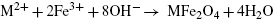 where M can be Fe2+, Mn2+, Co2+, Cu2+, Mg2+, Zn2+ or Ni2+. Complete precipitation should be expected at pH levels between 8 and 14, with a stoichiometric ratio of 2:1 (Fe3+/M2+) in a non-oxidizing environment. The size, shape, and composition of the MNPs very much depend on the type of salts used (e.g., chlorides, sulfates, or nitrates), the M2+/Fe3+ ratio, the reaction temperature, the pH value, the type of base, the mixing rate, the ionic strength of the media, the reactants addition sequence, and the bubbling of nitrogen gas (Faraji et al., 2010).