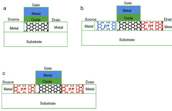There are three kinds of CNFET: The first kind is the MOSFET-like CNFET (which contains the p-type CNFET andn-type CNFET), which operates in a unipolar mode; the second kind is the Schottky barrier (SB) CNFET, which shows ambipolar characteristics, but because of the SB element, it is not appropriate for high performance applications; the third kind of CNFET, suitable for low power applications, is the band-to-band tunneling CNFET that has obviously low current in its active mode (Alkaldy et al., 2014). Fig. 1 shows three kinds of CNFETs. A CNFET has relatively low off-current while the transistor is inactive; in other words, when the CNFET is off, leakage power consumption is low. CNFETs have electrical specifications and structure similar to MOSFETs, which facilitates the exploitation and reuse of previous MOSFET-based architectures and manufacturing processes (Bagherizadeh & Eshghi, 2011a, 2011b).