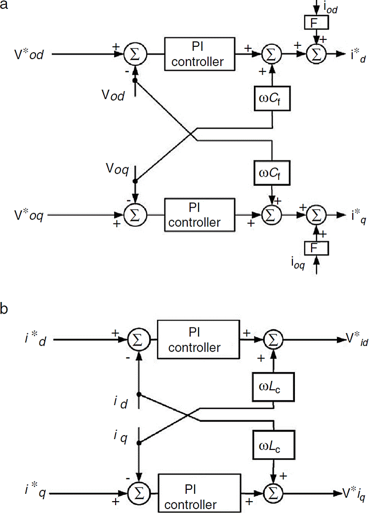 Reference voltage and frequency generated by power controller are fed to back to back voltage and current controllers (Fig. 3) to create reference currents (