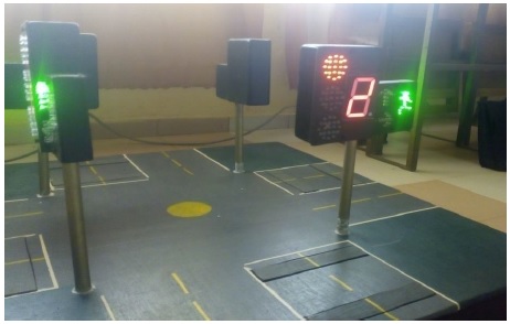 Fig. 7 shows the sequence B cycle of operation giving the right of way to the road 1 pedestrians after the sequence 1. In line with the program that was written, it was observed upon testing that the GSM module was able to send feedback message after a command to override a particular road was typed in the cell phone. The figure below shows the prototype in its full scale work. In line with the program that was written, it was observed upon testing that the GSM module was able to send feedback message after a command to override a particular road was typed in the cell phone. Fig. 8 shows a portion of complete cycle of operation of the prototype.