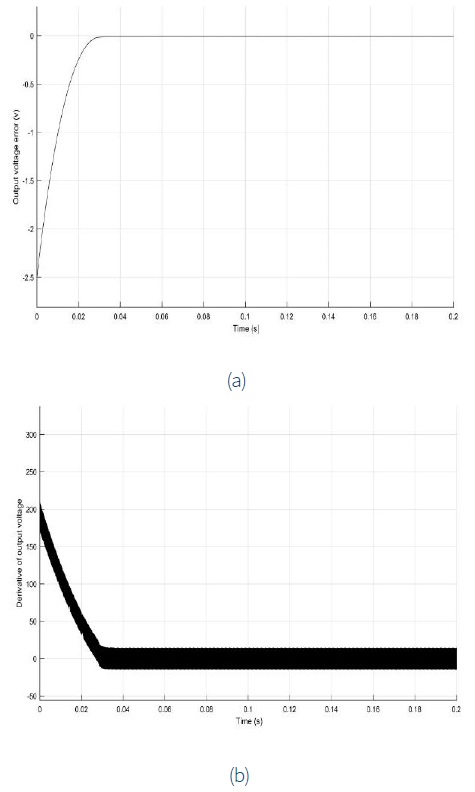Figure 7 Response of the state variables of the system: (a) output voltage error; (b) derivative of the output voltage error.