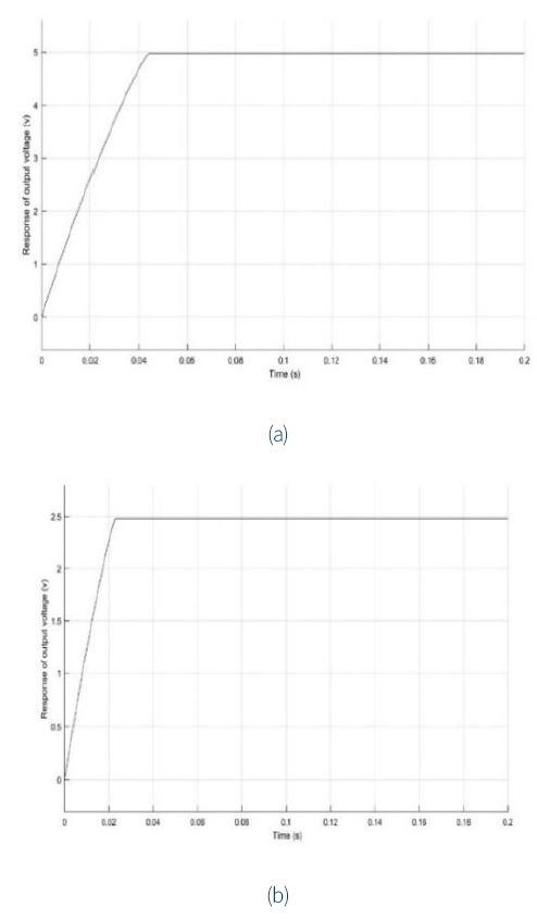 Figure 13 Performance of controller in the presence of measurement noise, (a) output voltage is set to 5v, (b) output voltage is set to 2.5v
