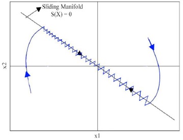 As shown in Fig. 2, the SMC consists of two phases. In the first phase, the state variables of the system move toward the sliding line in the phase plane. The equivalent control law is responsible for the first phase. In the second phase, the state variables of the system slide along the sliding line towards the origin in the phase plane. The switching control law is responsible for the second phase.