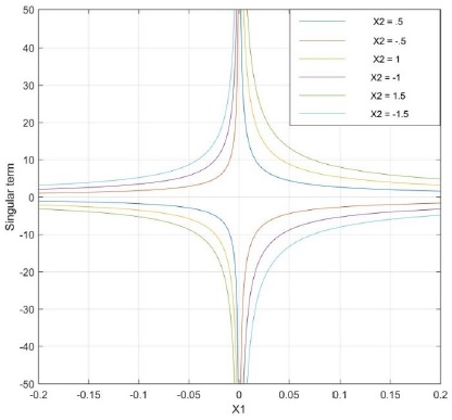 Remark 3. As shown in Fig. 3, if the system states are within set {(x1, x2)| x1→0,x2≠0}, the control input signal is unbounded. In this case, the stability and safety of the system cannot be guaranteed. This condition appears by the singular term in the control input signal (24) as follows: