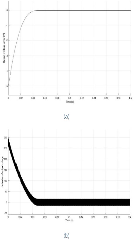 Figure 10 Response of the state variables of the system: (a) output voltage error; (b) derivative of output voltage error.