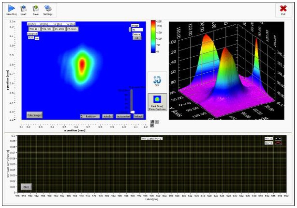 • the software interface controls the image acquisition and analysis to characterize the laser beam.