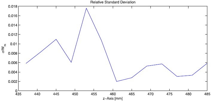 Figure 20 Relative standard deviation of the measured beam radius along the beam axis. The measurement error is less than 1.8%.