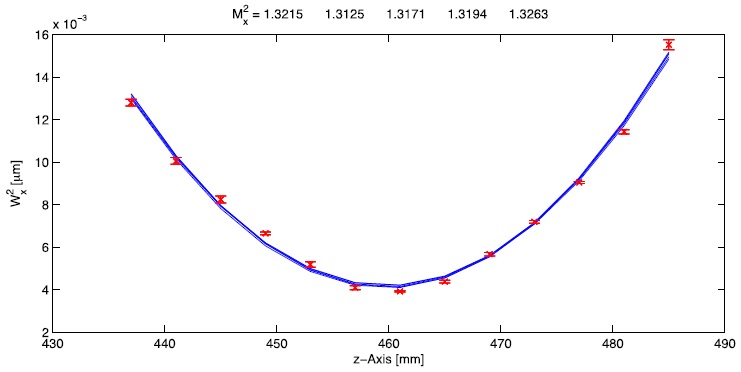 The radius propagation curves obtained with the apparatus show the expected parabola behavior (Figure 22). The M 2 x values for the diode laser are consistent with the ones available in the literature.
