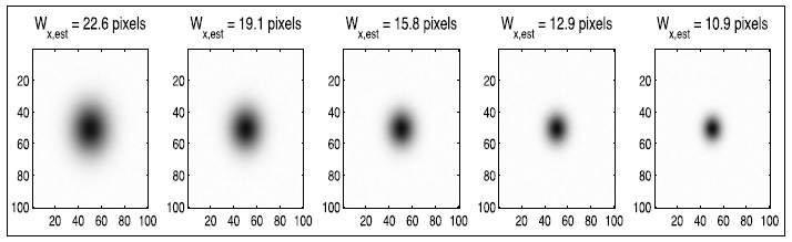 The moment-based expression (10) is also used to measure the radius W x and W y from real images. It weighs each pixel at position (i,j) by its intensity p ij.