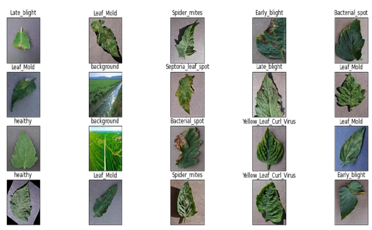 using plot function of matplotlib's random 20 dataset images were plotted as represented in the Figure 4. Subplots () created 4 rows and 5 columns. subplots () create unit-specific axes objects. Using imshow (), we'll display each image on each axes object. Finally, the Figure 4 is shown using show ().
