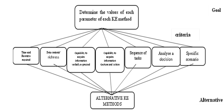 Section 3 describes the proposed analytical hierarchy process and environmental parameters impact for knowledge acquisition support "AHP & PIE for KAS”.