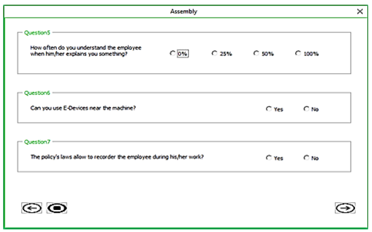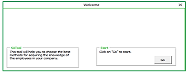 The primary objective of this research is to develop a tool that will support management decisions in the choice of employee's knowledge acquisition method. A decision support system (DSS) refers to a decision support software system that supports management in making strategic decisions, mainly when operation research solutions are not viable. Such a tool must be cheap, user-friendly, effective, efficient, and transversal for any process e.g., assembly, maintenance etc.To develop this tool, a user form is first developed in Excel. More specifically, in different user forms linked together through "button". For the realization of the user form, VBA language is used. This user form queries the management on a range of issues that may impact the process. The tool provides a questionnaire that allows for accurate and careful analysis. The first user form is shown in Figure 6.
