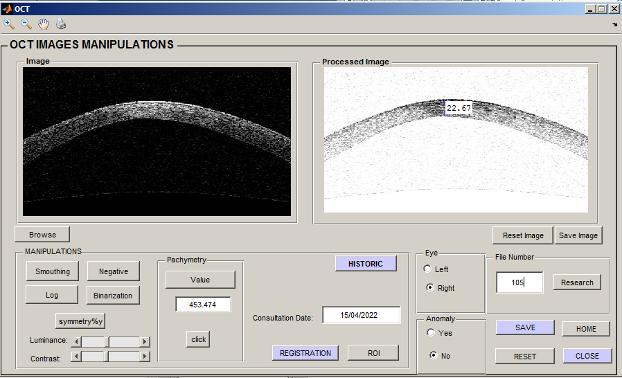 OCT images are usually contaminated with speckle noise (Rabbani et al., 1999). Different image processing can reduce the effect of this noise and improve image quality (Chaari et al., 2020). This interface will give a very simple way to choose exactly the desired operations for an image: