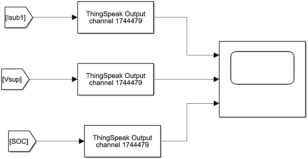 Figure 4 shows the signal communication between IoT platform and simulation plant implemented using MATLAB/Simulink. As shown in this figure a particular channel number is assigned to the system, ensuring safety. Figure 5 depicts the data flow from electric vehicle to the control office first, the data is transmitted wirelessly from the electric vehicle to the nearest base station this is done using (Wolfert & Isakhanyan, 2022) an internet communication system acting as an intermediate step to upload data in the cloud. After the data is uploaded to the cloud in real-time, the authorized person can implement a condition monitoring algorithm. If any discrepancy is found in the data, the computer through a combination of cloud computing and edge computing will notify the authorized person for further action so that any unpredicted event can be omitted (Muralidharan et al., 2022). In the future, the data collected through supercapacitors can be used in building artificial intelligence and machine learning algorithms that can further optimize vehicle performance (Lionel et al., 2021). Integration of all four components that include IoT hardware, IoT platforms, deep dive, programming, and case study. Deployment scenarios is a major part of any condition monitoring system physical system will have a microcontroller that will function as the brain of the entire system, current sensor, voltage sensor, temperature sensor, humidity sensor, accelerometer sensor and vibration sensor. The data from each sensor will be sent to the microcontroller and the microcontroller will send all the combined data to the cloud for further analysis. IoT platform ThingSpeak is used to visualize the data gathered from all the sensors.