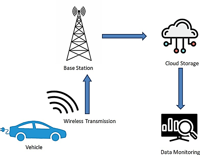 This proces enables the wireless transfer of data between the electric vehicle and the monitoring station, ensuring efficient and reliable monitoring of the supercapacitor system.