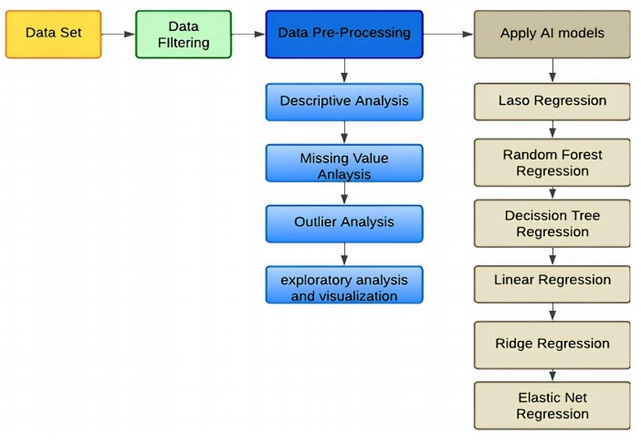 Random forest is a popular supervised machine learning algorithm used for classification and prediction of data. It builds decision trees using various samples, and in cases of regression, as depicted in Figure 3, it sorts and averages the data based on the majority vote outcome. One of its distinguishing features is its ability to handle datasets with both categorical and continuous variables. When it comes to classification problems, the random forest algorithm typically yields superior results (Deepthi & Febin, 2016).