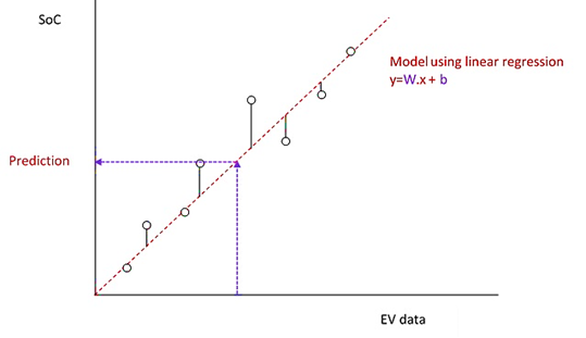 The proposed work aims to identify a supervised machine learning technique which utilizes the input data from the vehicle and predict accurate SoC and temperature. Regression analysis can be used to establish the relationship between dependent and independent variables and predict continuously changing values of the vehicle's battery state of charge and battery temperature.