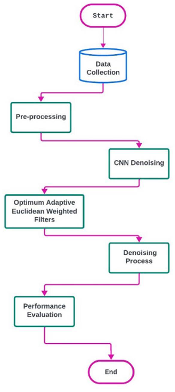 By combining Deep learning and optimization methods, this innovative approach creates a more powerful system than usual techniques for removing noise. The following sections will explain each step of this method in detail, and Figure 2 shows a graphical representation of the process. The proposed method for reducing noise works better and can be used in a wider range of situations because it can adjust to distinct levels of speckle noise. Indeed, let us proceed with an analysis of the procedural phases and furnish a written depiction of the methodology, accompanied by an elucidation of the proposed flowchart.
