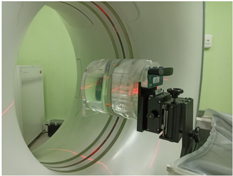 This type of research is quasi-experimental with a pretest posttest design. VCT QA phantom, placement of the phantom as shown in figure 1, scanned with abdominal CT parameters with the combination of tube voltage variations (80 kV, 100 kV and 120 kV) and dose reduction settings (50% and 60%). The radiation dose shown by CTDIvol on the CT Scan monitor screen is recorded in the observation table. CTDIvol is used as an index of the radiation dose generated by a CT scan to determine the approximate dose received by the patient.