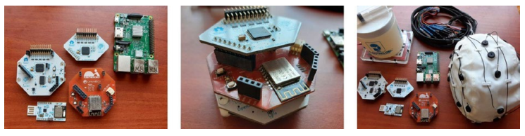 Communication module: The module for conveying information is mainly built on Apache Kafka, serving as the backbone for supporting a distributed communication system across the entire architecture. Even though analyzing EEG neural responses requires fast and reliable data transmission, this module also supports slow communication via WebSockets. Thus, using a Wi-Fi shield, the maximum sample rate can be increased from 250 Hz to 16 kHz for eight channels. Simple read-and-write commands perform communication between the computer and the board. Also, the module supports Message Queue Telemetry Transport (MQTT) and TCP, with TCP being the preferred choice due to its simplicity. As regards OpenBCI, it is based on ADS1299, a 24-bit analog-to-digital converter from Texas Instruments. In addition to offering flexibility in sampling rate, number of channels, and protocols, the communication module ensures that EEG data blocks will be ready within a time less than their duration.