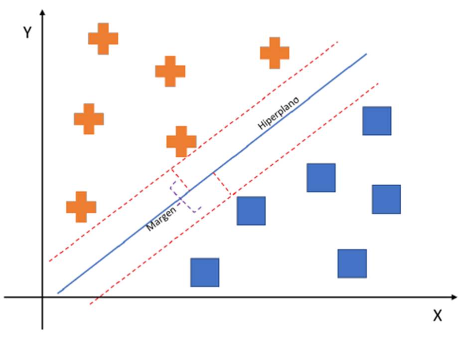 Next, an SVM with a linear kernel is created using the SVC() class. The SVM model is trained using the training set using the instruction svm.fit(X_train, y_train). The evaluation of the model is performed with the test set (X_test), where the SVM classifies the unobserved data, and the predictions are compared with the actual labels (y_test).