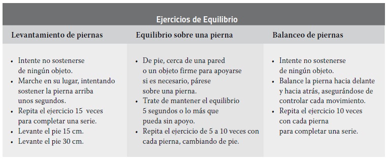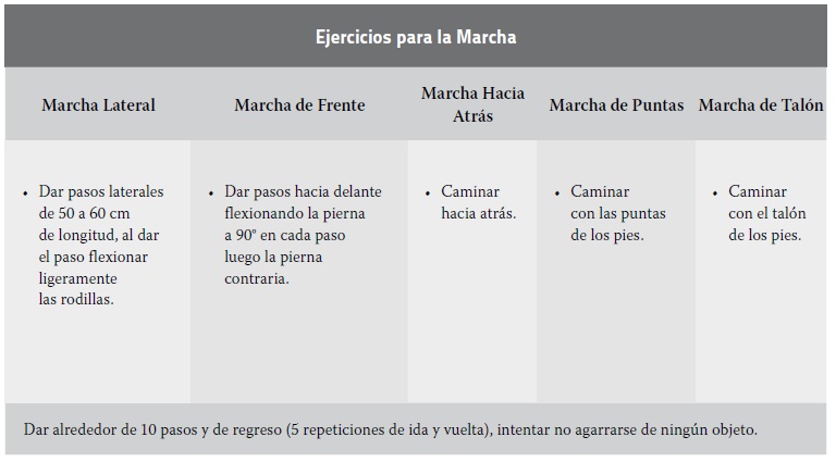 Ver Termoterapia, Movimiento Articular, Ejercicios de Fortalecimiento, Uso correcto de dispositivos para la marcha, Ejercicios de Equilibrio, Ejercicios para la Marcha.
