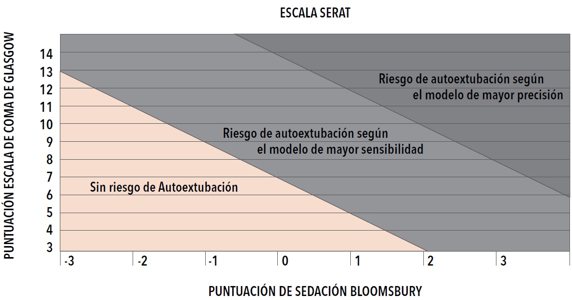 Moons et al. Y Moons et al.8, 9, a partir de la identificación de los factores de riesgo desarrollaron un esquema para la estratificación de riesgos de autoextubación en pacientes de cuidados intensivos (SERAT), la cual está compuesta por los puntajes de sedación de Bloomsbury y la Escala de Coma de Glasgow (Figura 2). Resaltan la necesidad de disponer de una herramienta para la valoración y categorización del riesgo de ENP, considerada como la estrategia primordial para la prevención.