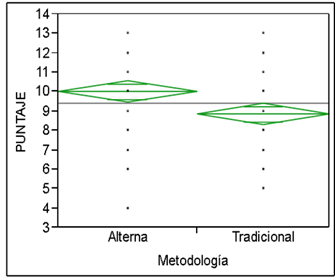 Gráfica 4 Diferencia de medias entre la metodología tradicional y la metodología alterna en el postest
