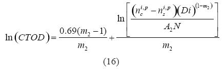 where the values of ILF are in percentage. Solution of Equation 14 in terms of CTOD yields,
