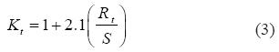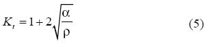 At the beginning of this section it was pointed out that the bluntness of the notch can significantly affect the strain generated at the root of the notch and consequently the propagation rate of the crack. In light of that, Smith and Miller [7] proposed that Kt should be determined by,
