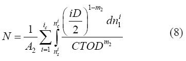 In Eq.(8) the parameter nsi and nci represent respectively, the position of the crack tip at the beginning and end of each interval i of crack growth. These two parameters are calculated by,