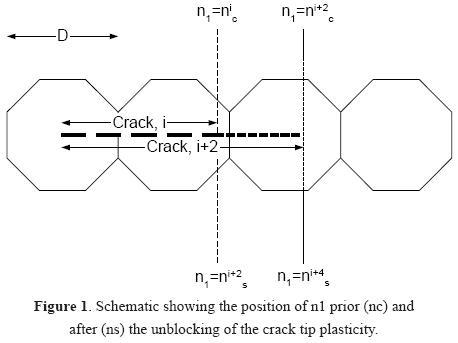 where A2, m2 are parameters from the Paris law of crack propagation, CTOD is the crack tip opening displacement and nsi, nci are limit values of n1 as defined in Figure 1.