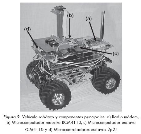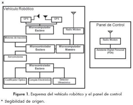 El sistema consta de dos unidades, el vehículo robótico y el panel de control (Fig.1), conectadas por medio de un enlace bidireccional de radiofrecuencia, que permite la transferencia de información para la operación y evaluación del recorrido