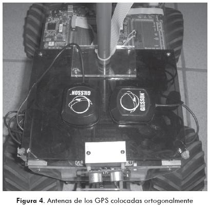 El vehículo lleva abordo dos sistemas de posicionamiento global (Parkinson y Spiker, 1996), que permiten tener la información redundante de la posición geográfica, con dos antenas de alta ganancia colocadas ortogonalmente (Fig. 4), en la que una de las dos señales recibidas es de mejor calidad que la otra.