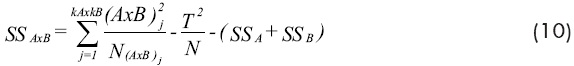 • N(AxB)j : Número de valores de el cruce j, de la interacción AxB.