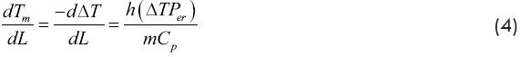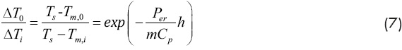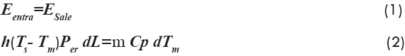 Donde Tm es la temperatura del material en el centro del cilindro, Per es el perímetro del cilindro, L es la longitud del cilindro, m es el flujo másico, Cp es el calor específico y h el coeficiente de transferencia de calor por convección.