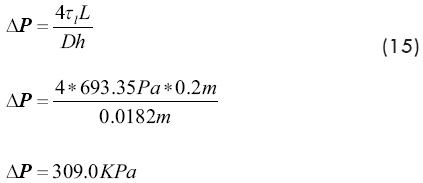 Para concluir con los valores teóricos se estima, por medio de la ecuación (15), la presión que se requiere para bombear el material a través del cocedor.