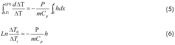 Al separar variables e integral desde ΔTi α ΔT0 a través de todo el ducto desde L=i a L=o, se obtiene: